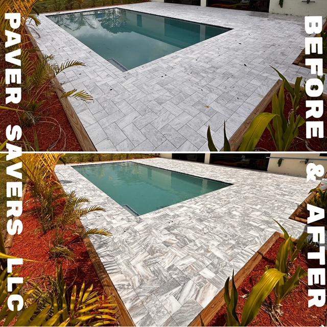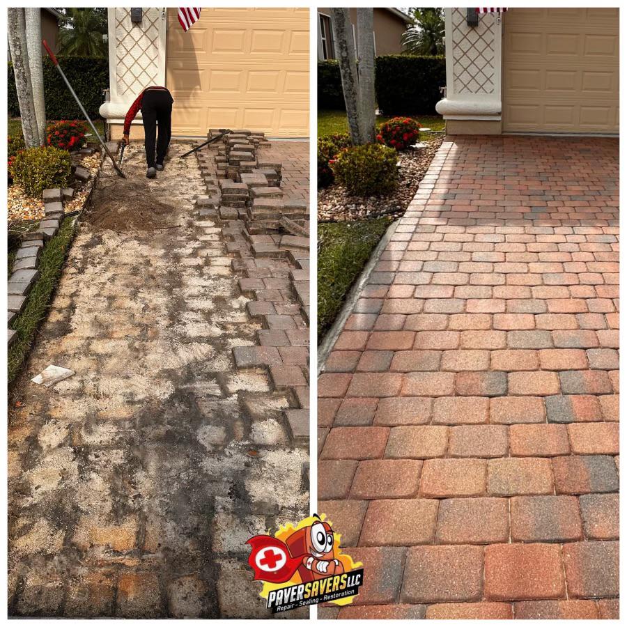 Is your driveway, walkway or entryway becoming extremely dirty and black from all the traffic? Paver Savers LLC provides complete restoration and sealing services for your home or business. We start every restoration project by using our state of the art recovery vacuum pressure washing tool to remove the existing sealant that was originally applied. This special machine cleans and removes the sealant by using high pressure, specialized cleaning solutions. It then sucks up and removes the water, solution, sealant, dirt, grease, grime, and efflorescent mineral deposits from the surface and joints. After the surface dries, we then refill the sand in the joints (if necessary), and apply 2 coats of a high-quality waterproof sealant. This waterproof sealant provides a waterproof floor coating that protects the driveway, walkway, entryway, retaining wall or other exterior surfaces from UV Rays, mold, algae, oil, grease, stains, weeds, and other matters that damage and dirty the surface. The end result is a like new looking surface that is protected and looks great. Contact us today for a free estimate.